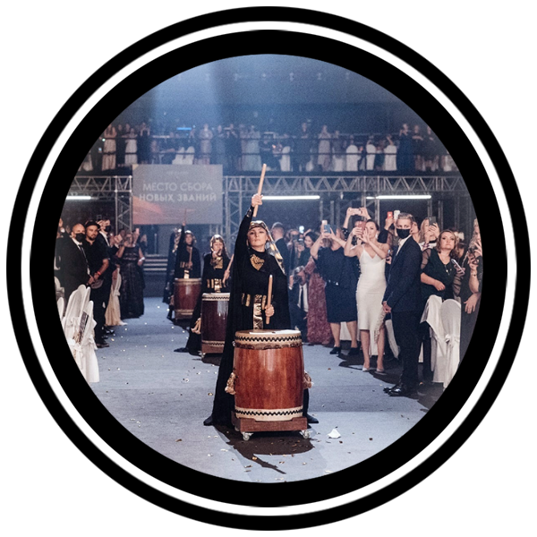 Погрузитесь в стихию звука и зрелищности с единственным в России «шоу гигантских барабанов»! Наши инструменты — самые большие в стране, созданные вручную в петербургской мастерской по многовековым японским традициям. Два исполинских барабана диаметром 2 метра и ансамбль из 3–10 Тайко поменьше создают неповторимую симфонию: их гулкие удары пробуждают древнюю энергию, а визуальная мощь завораживает с первого взгляда.